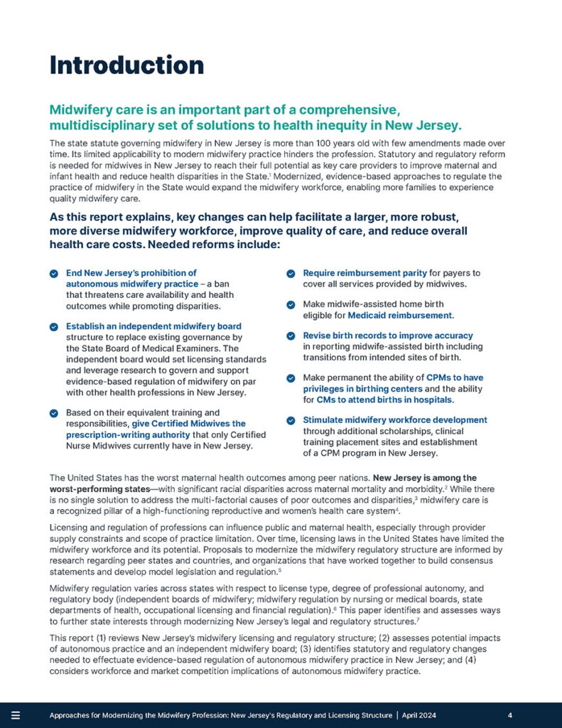 Modernizing midwifery regulation would help close racial disparities, lower costs, and make New Jersey’s maternal health system stronger and more equitable for all families.