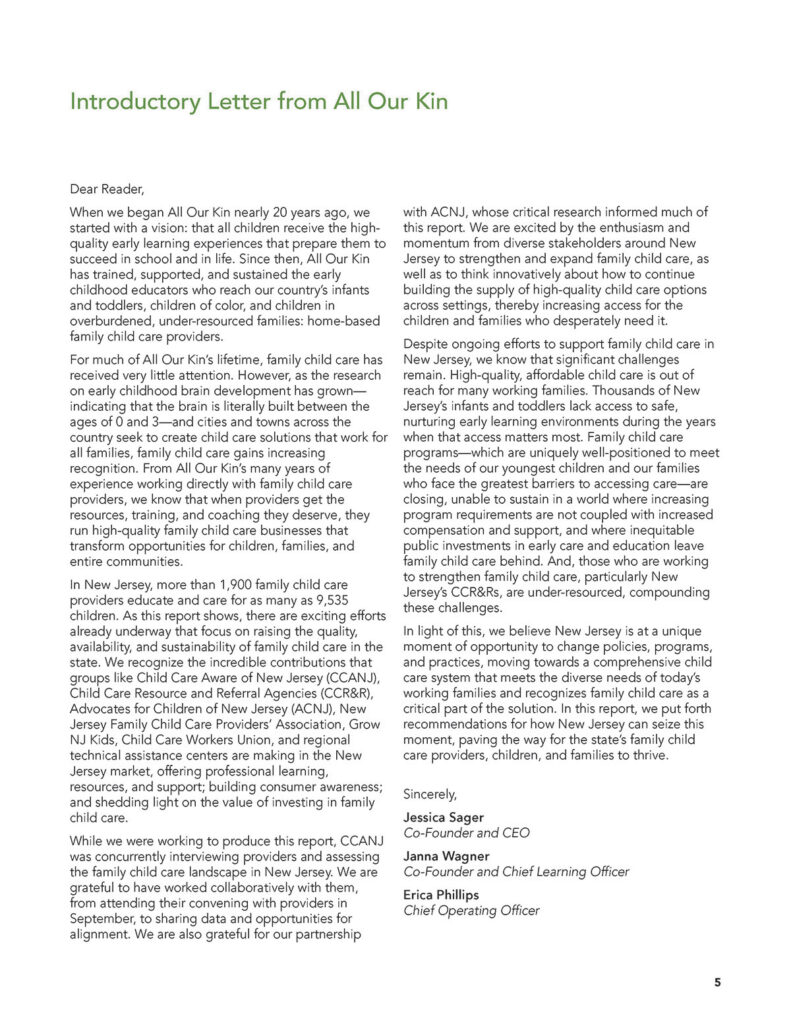 Funding for the All Our Kin New Jersey Family Child Care Landscape Report was made in conjunction with The Nicholson Foundation, the Overdeck Family Foundation, The Henry and Marilyn Taub Foundation, and the Turrell Fund.